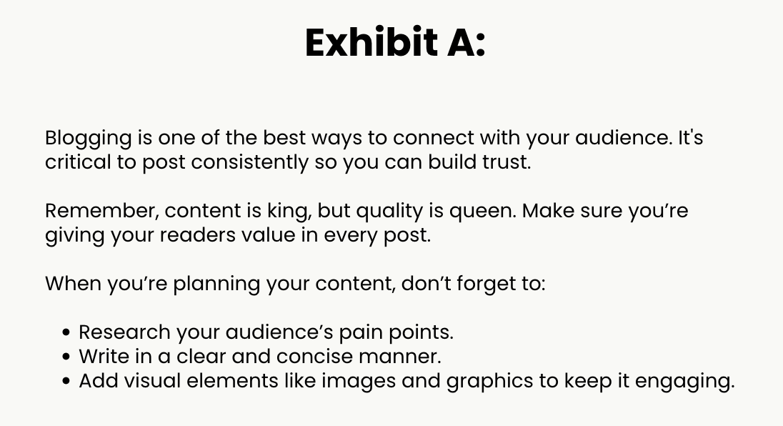 So again, as you're re-reading your blog post one last time, go in with the eyes of a reader in your audience and ask yourself – am I giving them the info that I said they would receive?
