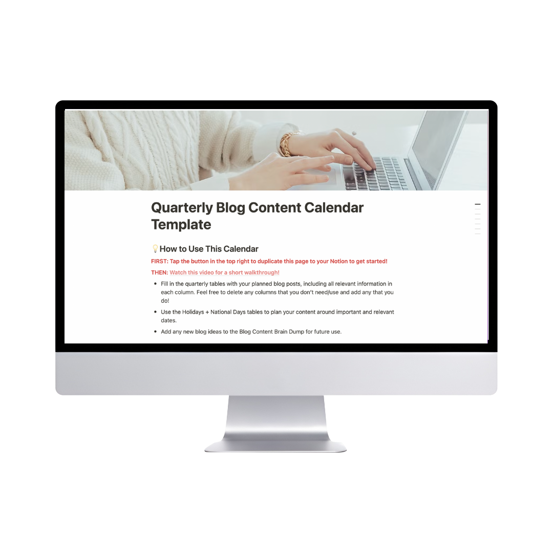 Keep your blog content organized and strategic with this quarterly blog content calendar Notion template, complete with a video on how to use it effectively.